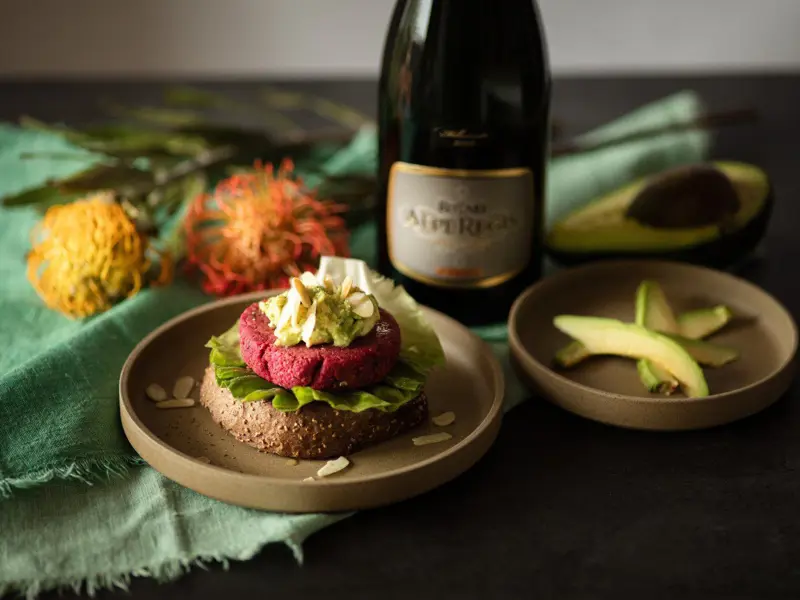 Per bilanciare il sapore dolce della barbabietola e dell'avocado stappate un Metodo Classico dal grado zuccherino molto basso: Rotari AlpeRegis Pas Dosé.