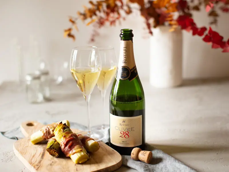 Un’idea facile facile per un antipasto sfizioso o un contorno saporito: dei croccanti bastoncini di porri cotti al forno avvolti dal prosciutto crudo e adagiati su una delicata crema al parmigiano. Abbinati alla freschezza del nostro Cuvée 28 saranno un piatto da leccarsi i baffi!