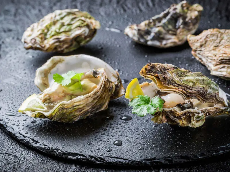 Prendete nella mano sinistra l'ostrica, con la parte piatta verso l'alto, la cerniera dell'ostrica dovrà essere nella direzione opposta del vostro polso. Infilate la lama del coltello apposito tra le due valve a circa 2/3 dell'altezza dell'ostrica vicino alla cerniera. Fate scorrere delicatamente il coltellino lungo tutto il lato interno dell'ostrica e tagliate il muscolo che tiene unite le due valve. Fate girare tutta la lama intorno al perimetro interno dell'ostrica e quindi ruotate la lama del coltellino per allontanare le due valve. Aprite l'ostrica con delicatezza e fate attenzione a non perdere il liquido in essa contenuto, che deve essere assaporato assieme al mollusco. Impugnate l'ostrica aperta ed eliminate con un coltello piccolo i frammenti di conchiglia. Passate quindi il coltello sotto il mollusco e recidete il muscolo che lo tiene ancorato alla conchiglia.Se volete presentarle in tavola con un gradevole impatto visivo mettetele in un vassoio pieno di ghiaccio tritato con delle fette di limone per guarnire. Mangiate le ostriche al naturale oppure con un po’ di succo di limone o una spolverata di pepe nero.