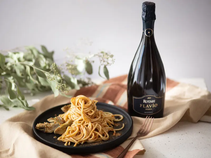 Accompagnate con un calice di Rotari Flavio, il nostro "imperatore", che con il suo gusto pieno e elegante donerà grande risalto alla vostra creazione.