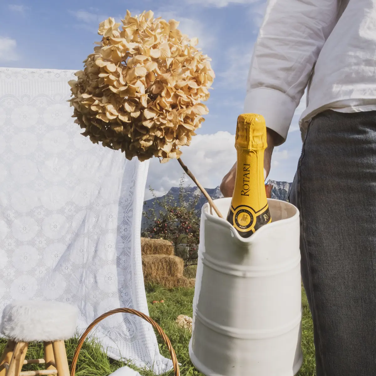 Quando il prestigio di un metodo antico incontra l’audacia delle montagne, la pazienza della natura alpina e la contemporaneità dello stile, nasce Rotari Trentodoc. Dal soffio delle rocce nascono bollicine di carattere: la scelta di stile per ritrovare l'eco delle vette in un calice.